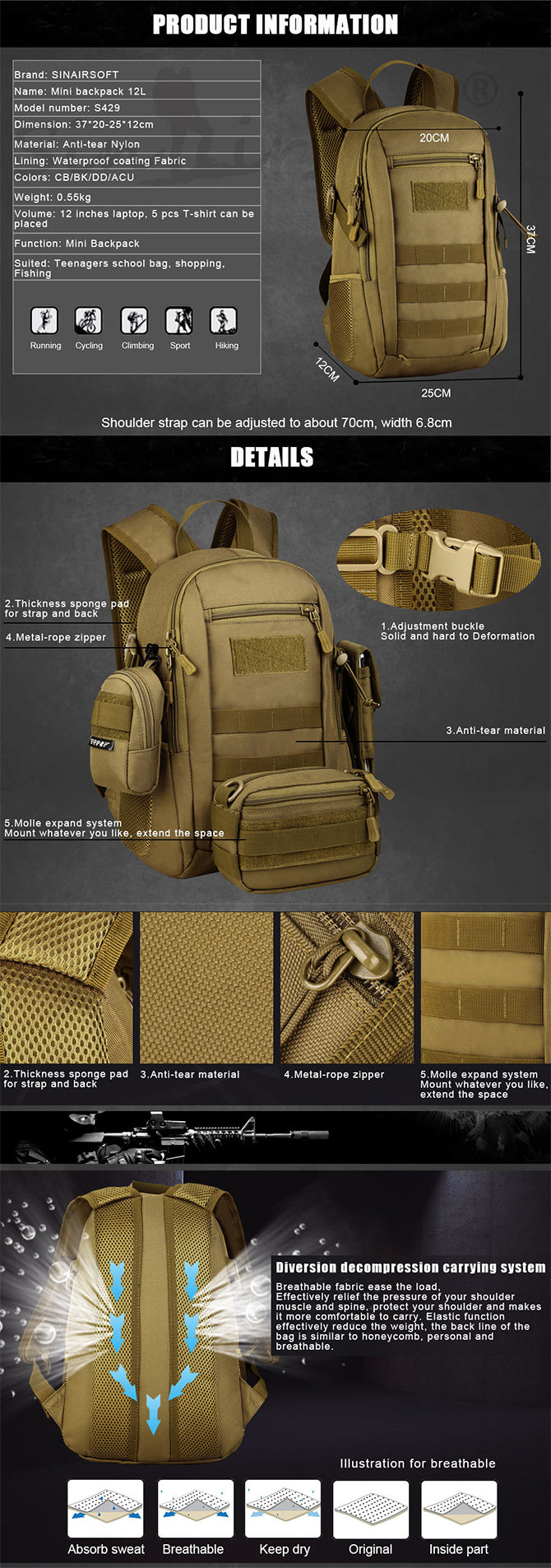 Volume: 12 inches laptop, 5 pcs T-shirt can be placed
